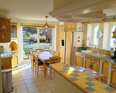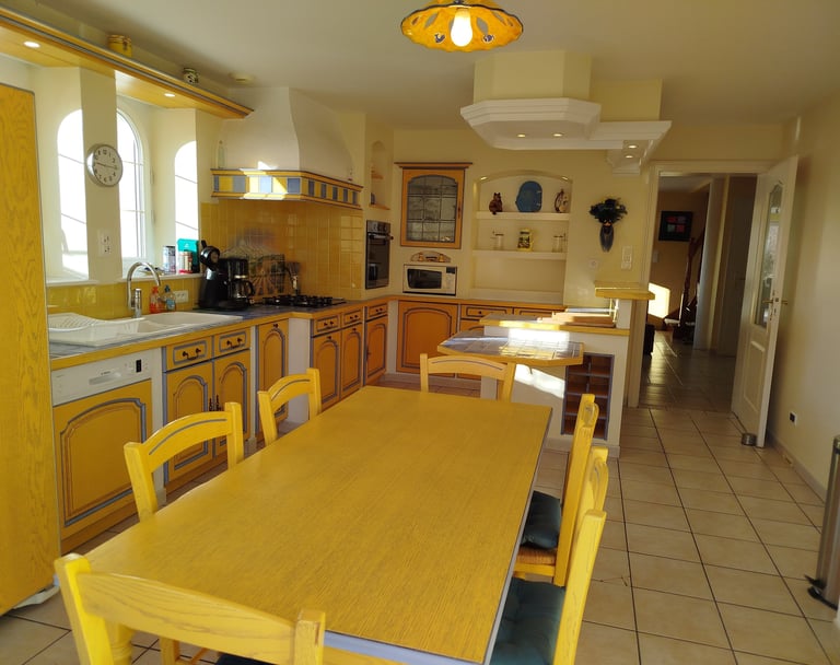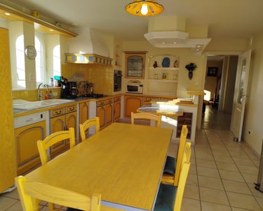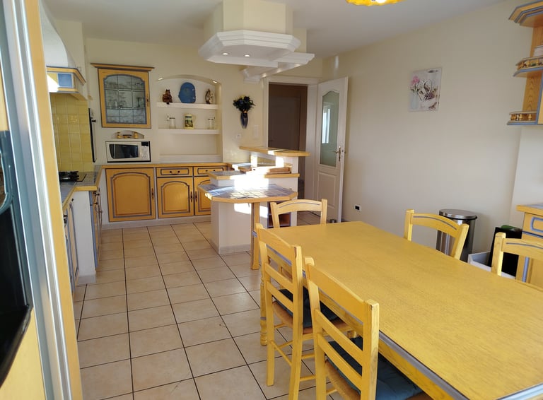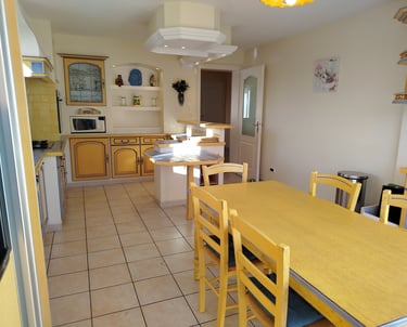 Découvrez notre gîte idéal pour des vacances en famille ou entre amis, disposant de 6 chambres, 4 salles de bain, un grand hall d'entrée avec billard, cuisine équipée, 2 salons, une salle à manger avec grande table pour 14 personnes, 1 lingerie avec machine à laver, sèche-linge ainsi qu'une douche et un lavabo, un espace mezzanine et une grande salle de jeux/cinéma/sport. Côté extérieur de grands espaces sont à votre disposition, avec pelouse, plusieurs terrasses avec coin repas ou détente, terrain de pétanque avec boules, BBQ gaz.