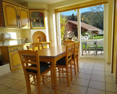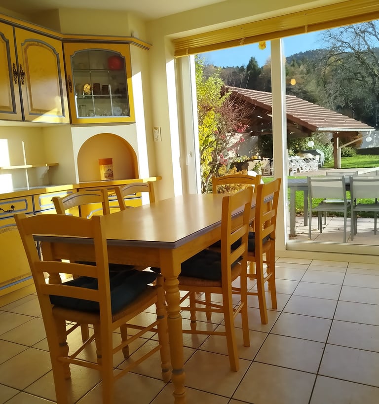 Situé au pied des Hautes Vosges, notre gîte est une ancienne ferme entièrement rénovée de 350m2, située dans le massif du Fossard, sur les hauteurs de Saint Etienne les Remiremont, classé meublé de tourisme 4 étoiles et labélisé Clévacances 4 clés . Cet endroit vous offre un cadre paisible, parfait pour se détendre et profiter de la nature environnante.